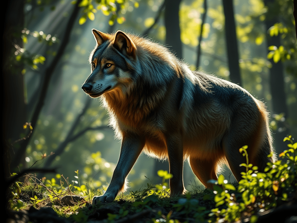 Le loup est un carnivore social qui vit en meute. Il est doté d’une excellente ouïe, d’un odorat très développé et d’une vision nocturne remarquable. Ces caractéristiques en font un chasseur redoutable, capable d’abattre des proies bien plus grandes que lui.