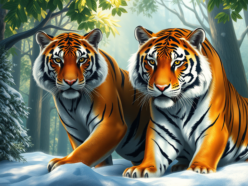 - Tigre de Sibérie : Le pelage est plus épais et plus long, avec des rayures plus larges et moins nombreuses, adaptées aux climats froids.