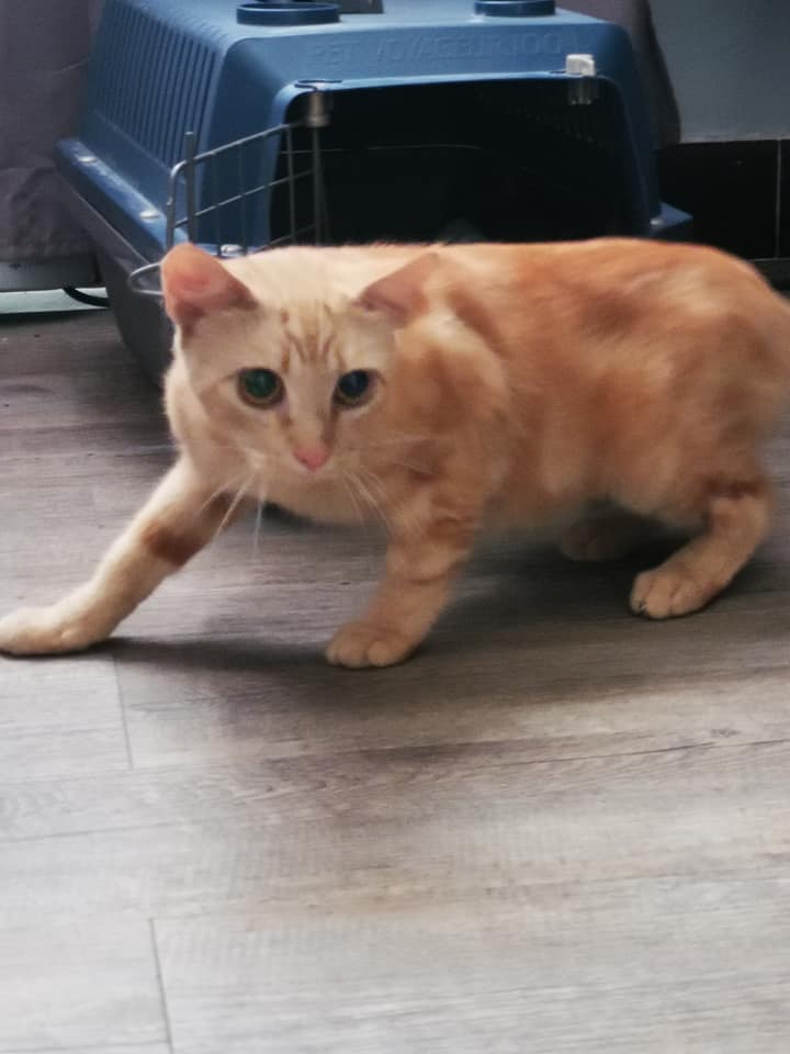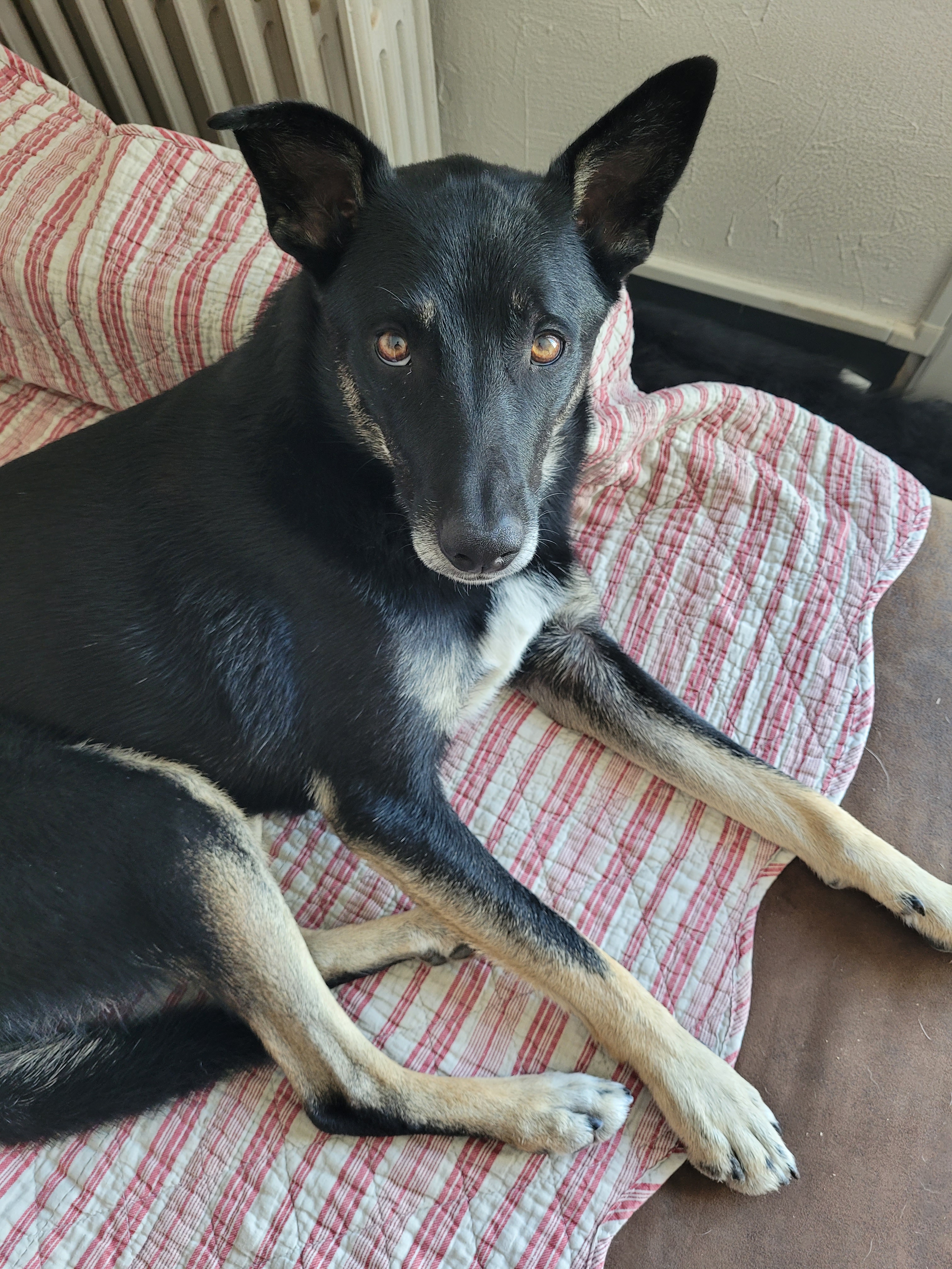 ![]() | Samba, trouvé avec sa fratrie en pleine montagne, complètement terrorisé. Inapprochable en refuge… depuis il s’est accaparé mon canapé. |